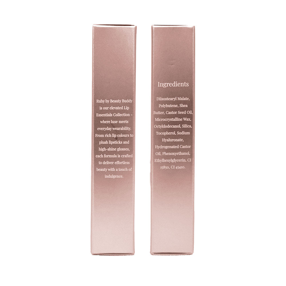 Ruby by Beauty Buddy is our elevated Lip Essentials range—where luxe meets everyday wearability. From rich lip colours to plush lipsticks and high-shine plumpers, each formula is crafted to deliver effortless beauty with a touch of indulgence.